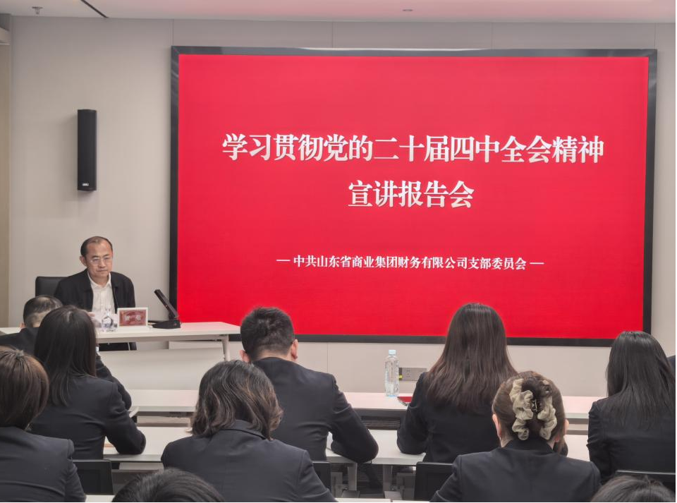 12月26日,集團(tuán)宣講團(tuán)成員,集團(tuán)黨委常委、副總經(jīng)理、首席合規(guī)官賀敬到財(cái)務(wù)公司宣講黨的二十屆四中全會(huì)精神,引導(dǎo)全體干部職工認(rèn)真貫徹落實(shí)全會(huì)精神,統(tǒng)一思想、凝聚共識(shí),以實(shí)干擔(dān)當(dāng)推動(dòng)集團(tuán)高質(zhì)量發(fā)展。