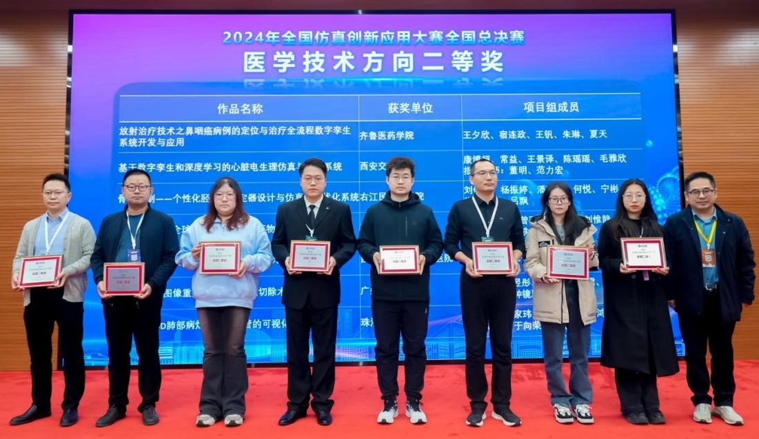 全國(guó)仿真創(chuàng)新應(yīng)用大賽是我國(guó)仿真技術(shù)創(chuàng)新應(yīng)用領(lǐng)域最高水平的技術(shù)競(jìng)賽,本次大賽以“仿真驅(qū)動(dòng)創(chuàng)新,應(yīng)用推進(jìn)融合”為主題,自2024年1月份啟動(dòng)以來(lái),吸引了全國(guó)眾多院校積極參與。齊魯醫(yī)藥學(xué)院高度重視,多輪次細(xì)致籌劃,對(duì)參賽學(xué)生進(jìn)行有針對(duì)性地培訓(xùn),指導(dǎo)學(xué)生精心打磨作品,《放射治療技術(shù)之鼻咽癌病例的定位與治療全流程數(shù)字孿生系統(tǒng)開(kāi)發(fā)與應(yīng)用》和《PET-CT檢查技術(shù)虛擬仿真實(shí)驗(yàn)系統(tǒng)》得到評(píng)委一致認(rèn)可,均榮獲二等獎(jiǎng)。
