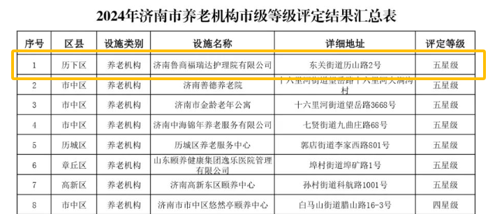 近日,濟(jì)南市養(yǎng)老服務(wù)設(shè)施等級(jí)評(píng)定委員會(huì)揭曉2024年市級(jí)等級(jí)評(píng)定結(jié)果,濟(jì)南魯商福瑞達(dá)護(hù)理院再度榮膺“五星級(jí)養(yǎng)老機(jī)構(gòu)”稱號(hào),這也是自2017年開(kāi)業(yè)以來(lái)連續(xù)第七年蟬聯(lián)此殊榮。