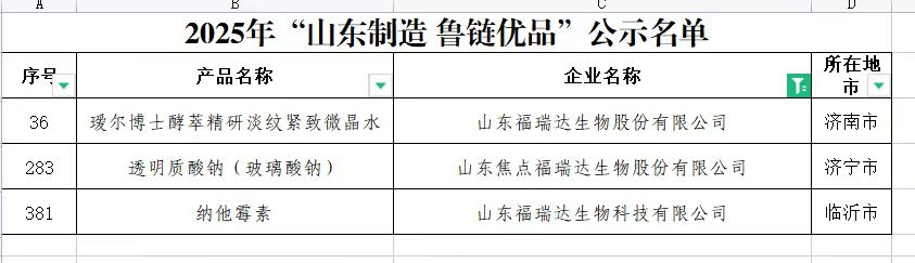 近日,2025年度“山東制造·魯鏈優品”評選結果公布。福瑞達旗下福瑞達生物科技的納他霉素、焦點福瑞達的透明質酸鈉以及福瑞達生物股份璦爾博士品牌的“酵萃精研淡紋緊致微晶水”三款核心產品成功入選,集中展現了福瑞達在生物制造領域的全產業鏈布局與創新硬實力。